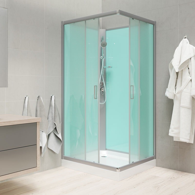 Sprchový box vnáší do ekonomické třídy nový rozměr kvality. Sklo je v designu Point, satin ALU profil. Tloušťka bezpečnostního skla je 5/4 mm. Sklo je dokonale utěsněno silikonovými lištami, nejedná se však o hermeticky uzavřený výrobek. Sprchový kout je osazen posuvnými dveřmi, které mají kvalitní pojezdy s možností perfektního seřízení. Dorazy zajišťují minimální nárazy při otevírání a zavírání sprchového koutu.