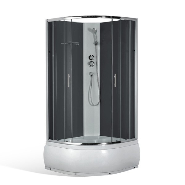 Transparentní 4mm bezpečností sklo zase zajistí, abyste se v případě jeho rozsypání nezranili. Zadní stěny sprchového boxu FARO mají barvu Smoke Glass. Dvoudílné sprchové dveře se pohybují na kolečkách s ložisky.