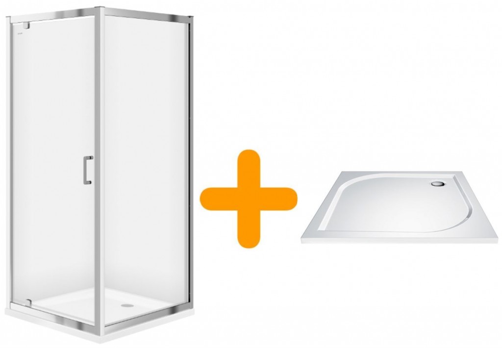 SPRCHOVÝ KOUT 80x80 TRANSPARENT SKLO + VANIČKA (S154-005-SET2)