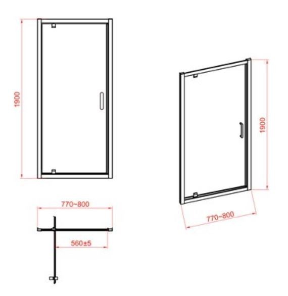 Sprchový kout s kyvnými jednokřídlými dveřmi od značky CERSANIT, jejichž profil je v chromovém provedení a doplněný je dvoubodovým madlem. Výplní dveří je čiré sklo s povrchovou úpravou EASY CLEAN o síle 5 mm.