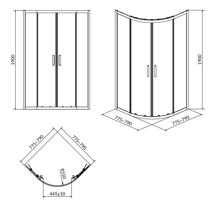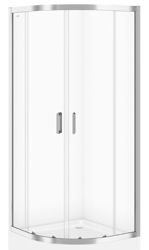 Čtvrtkruhový sprchový kout značky CERSANIT s hliníkovým profilem v chromovém provedení, doplněný dvoubodovými kovovými madly. Výplní je čiré sklo s povrchovou úpravou CleanPro o síle 5 mm.