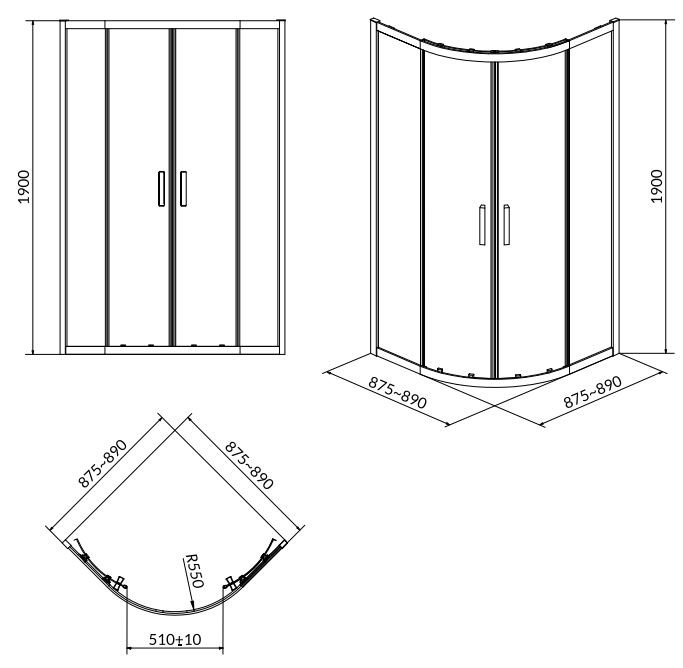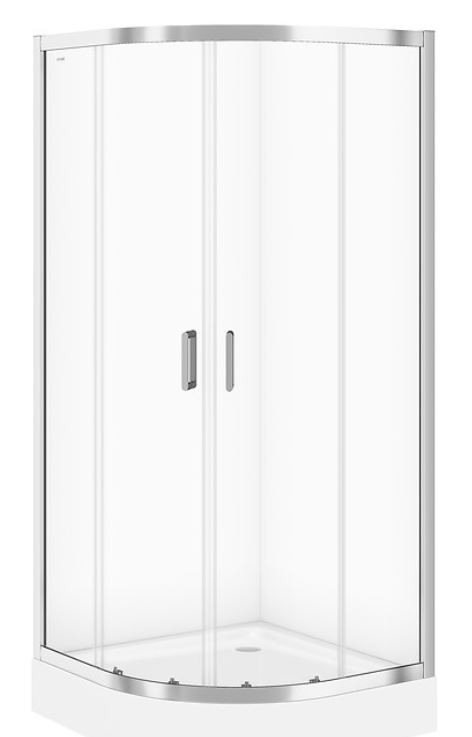 Čtvrtkruhový sprchový kout značky CERSANIT s hliníkovým profilem v chromovém provedení, doplněný dvoubodovými kovovými madly. Výplní je čiré sklo s povrchovou úpravou CleanPro o síle 5 mm.