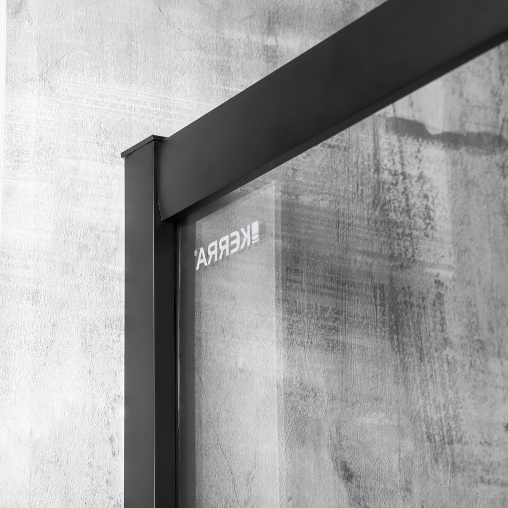 Použití dvoukřídlých posuvných dveří umožňuje pohodlné otevírání bez nutnosti udržovat volný prostor před kabinou. Průhledné tvrzené sklo o tloušťce 5 mm zajišťuje odolnost proti nárazu a bezpečnost při každodenním používání. Hliníkové profily s černou povrchovou úpravou , odolné vůči vlhkosti a korozi, zaručují strukturální stabilitu.