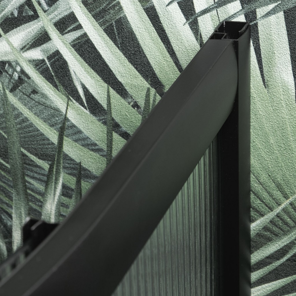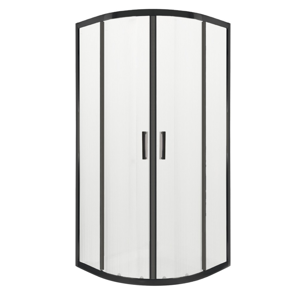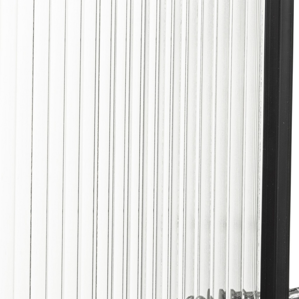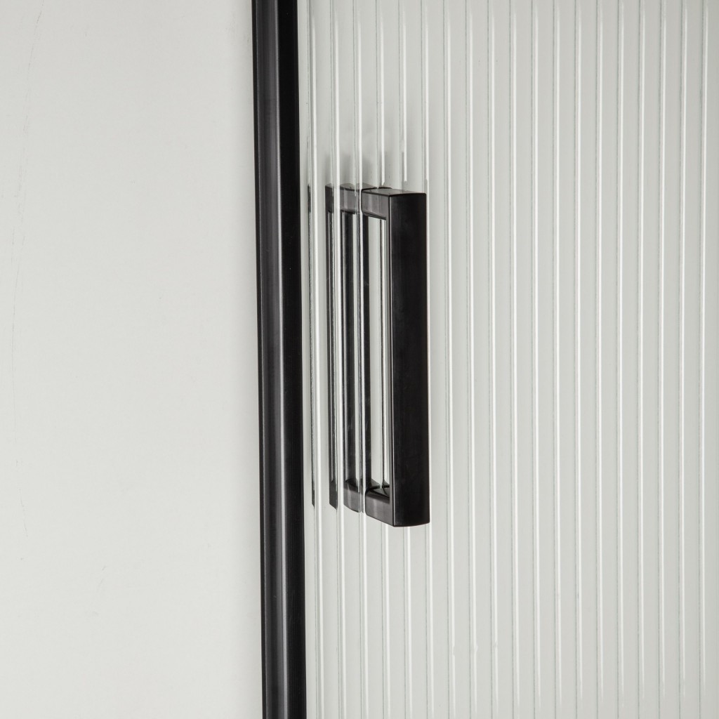 Bezpečnostní tvrzené sklo o tloušťce 6 mm má dekorativní strukturu "rýhování", která zajišťuje částečné zneprůhlednění a zároveň snadnou údržbu. Pro zachování čistého vzhledu doporučujeme používat stěrku na sklo, která pomáhá předcházet tvorbě vodních skvrn a matnému filmu.