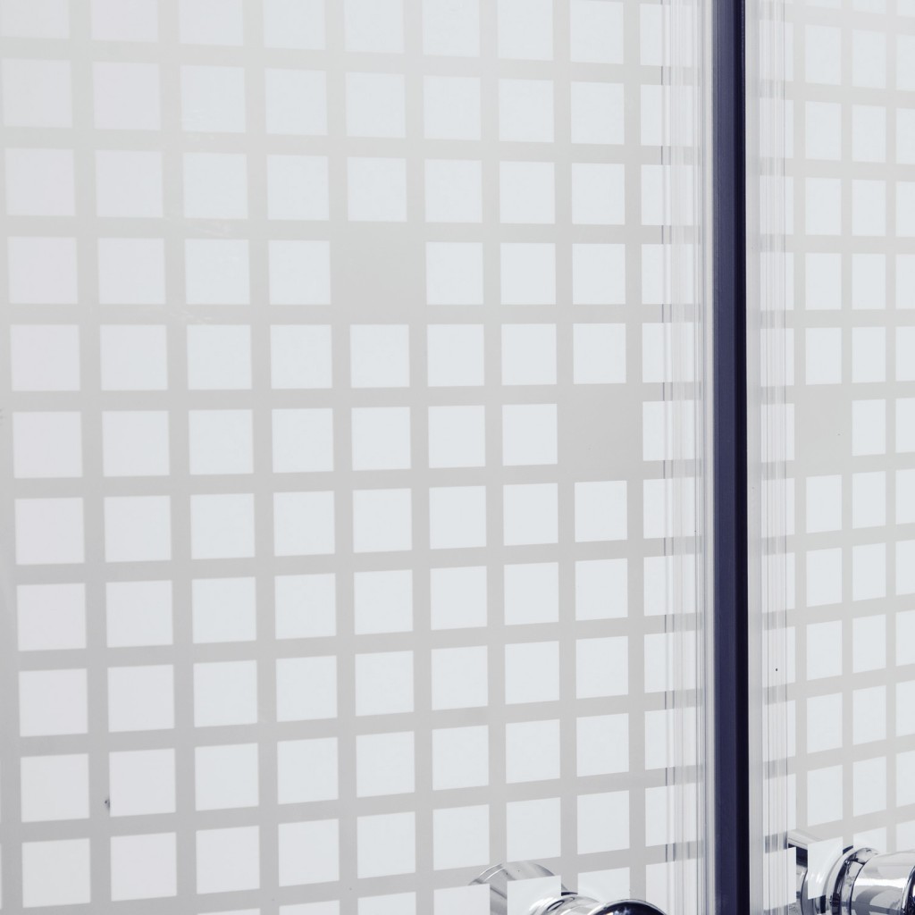 Bezpečnostní tvrzené sklo o tloušťce 4 mm je průhledné s dekorem (čtverečky).