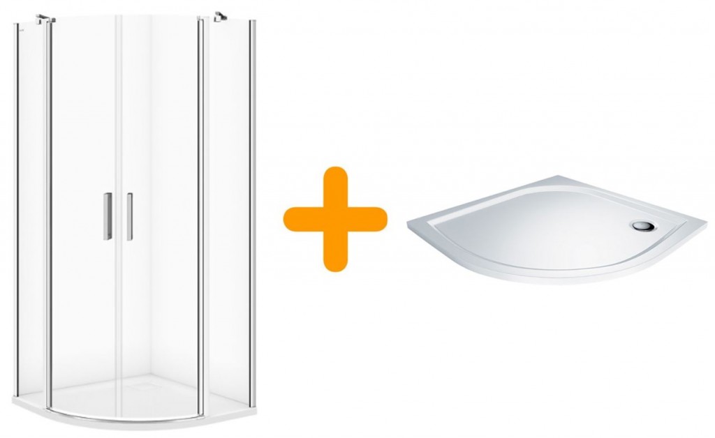 SPRCHOVÝ KOUT ČTVRTKRUH 90x90 TRANSPARENT SKLO + VANIČKA (S162-010-SET1)