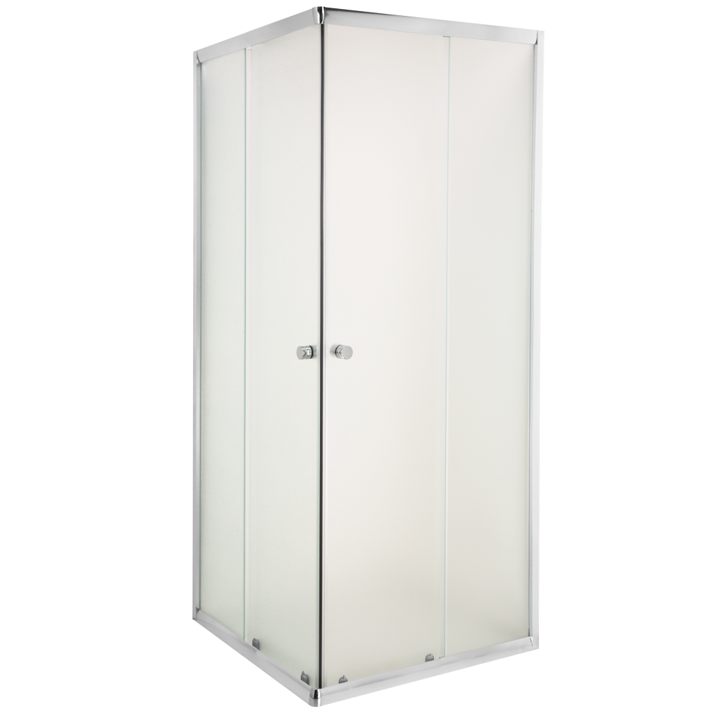 Čtvercový sprchový kout PARLA s mraženým sklem je dostupný ve dvou velikostech: 80×80 cm a 90×90 cm.