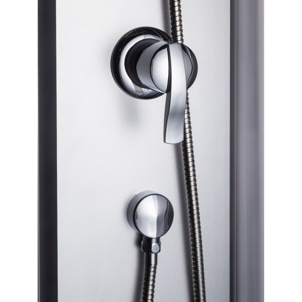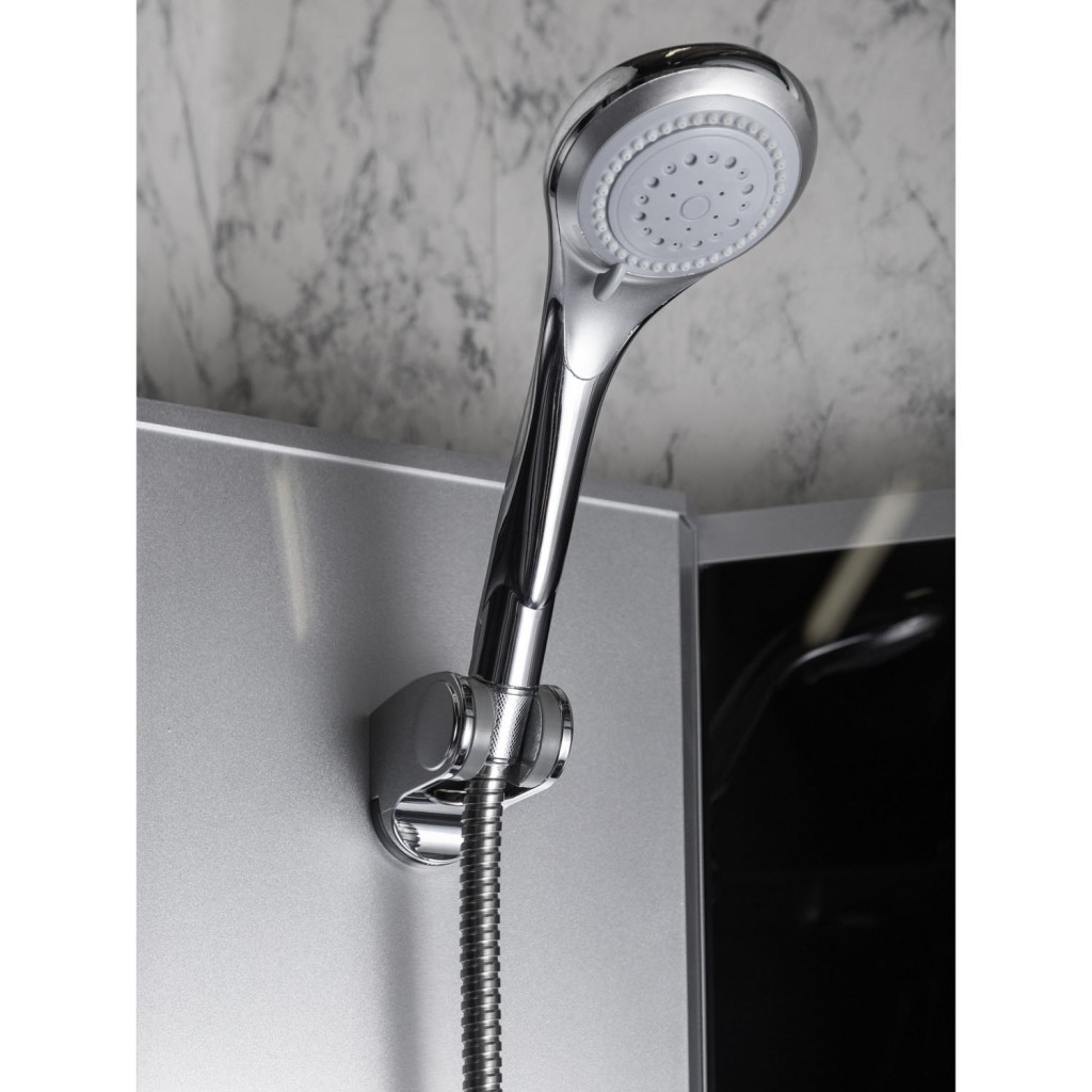Bezpečnostní tvrzené sklo o tloušťce 4 mm má přední části čiré s grafitovým odstínem, který zajišťuje částečné zneprůhlednění a zároveň snadnou údržbu. Pro zachování čistého vzhledu doporučujeme používat stěrku na sklo, která pomáhá předcházet tvorbě vodních skvrn a matnému filmu.