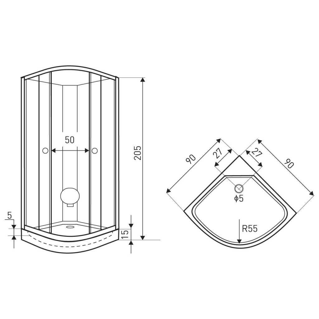 - rozměry: 90 × 90 × 205 cm