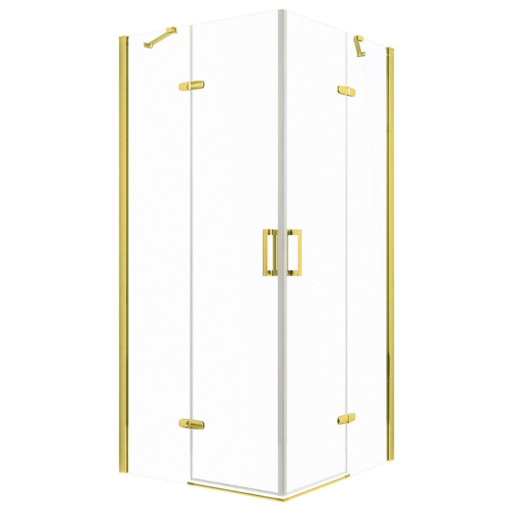 Sprchový kout Flow ve zlatém provedení je výrazný a elegantní prvek pro luxusně laděné koupelny. Jeho kompaktní rozměry 90 × 90 cm (přesně 88-90 × 88-90 × 195 cm) umožňují snadnou instalaci i v menších prostorech. Konstrukci tvoří hliníkové profily ve zlaté povrchové úpravě, která dodá koupelně noblesní a moderní vzhled. Kout je vybaven dvoukřídlými otočnými dveřmi na pantech, které umožňují široké otevření.