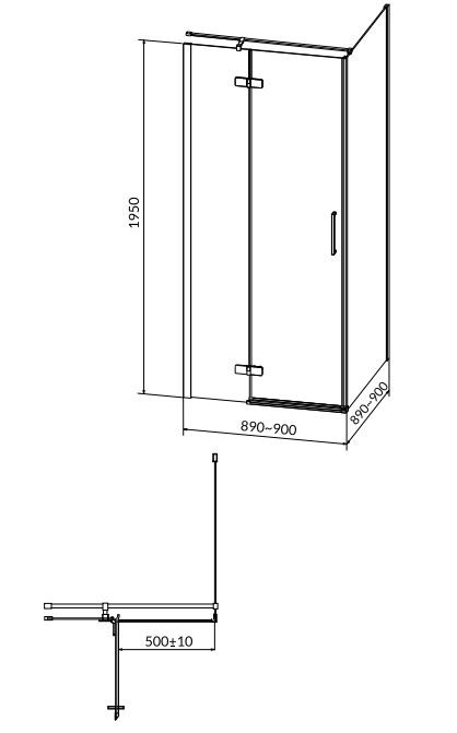 Sprchový kout JOTA čtverec 90x195, kyvný, levý, čiré sklo (S160-001)