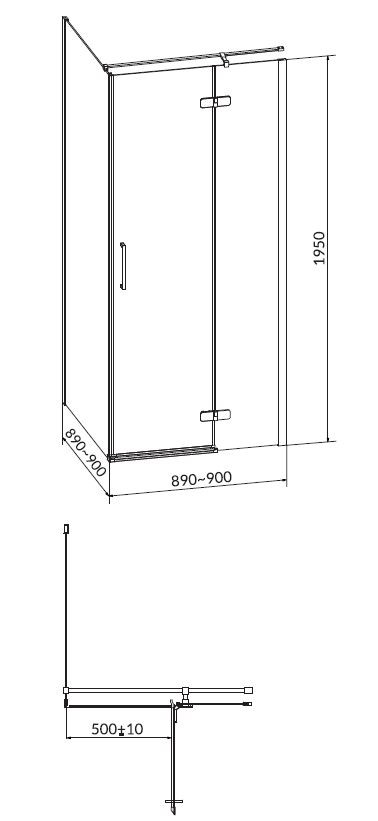 Sprchový kout JOTA čtverec 90x195, kyvný, pravý, čiré sklo (S160-002)