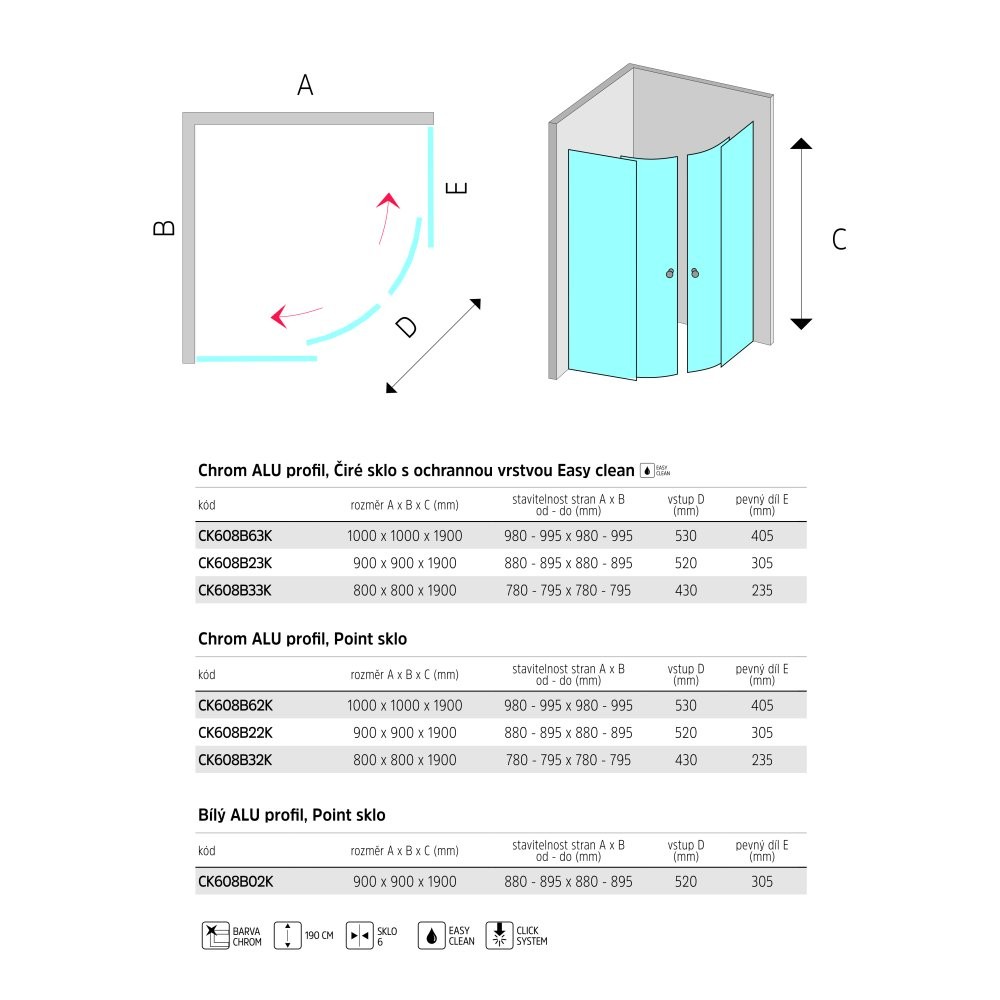 Lima je řada sprchových koutů Mereo, která navodí pocit čistého designu v každé moderní koupelně. Rovné hladké plochy, čisté linie a ostré hrany profilů umocňují pocit exkluzivity. Kvalitní skleněné výplně s bezpečnostním sklem. Tento kout nabízíme v provedení s čirým sklem.