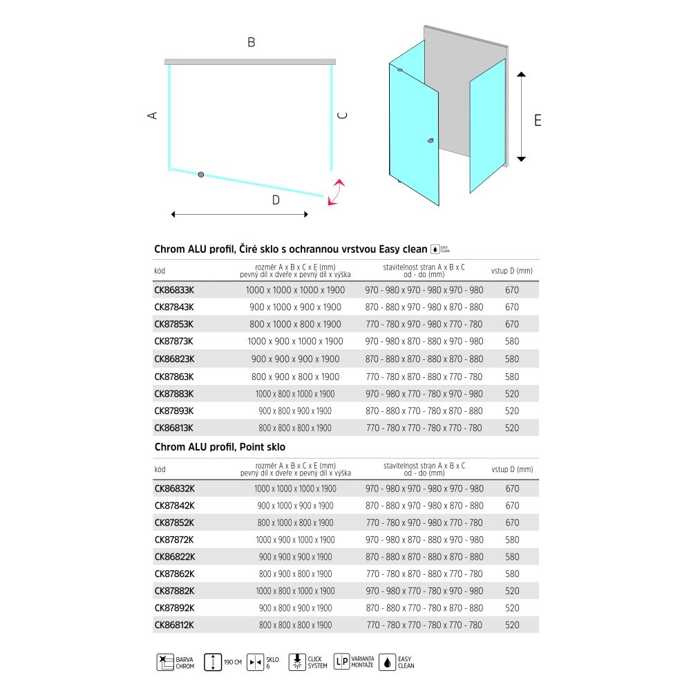 Výrobky v čirém provedení jsou opatřeny ochrannou vrstvou skla již při výrobě EASY CLEAN. Tato ochranná vrstva vytváří na povrchu skla neviditelný štít. Odstřikující voda je odpuzována a nemůže reagovat s povrchem skla. Tím nedochází k usazování nečistot, minerálů a nemnoží se bakterie. Proto je sklo snadno čistitelné.