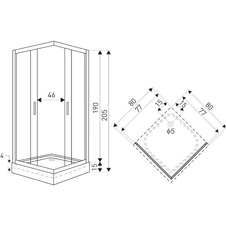 Čtvercový sprchový kout je dodávaný se sprchovou vaničkou o rozměrech 80 x 80 x 16 cm. K vaničce je potřeba dokoupit sifon – doporučujeme model Speed s průměrem 50 mm pro optimální odvod vody.