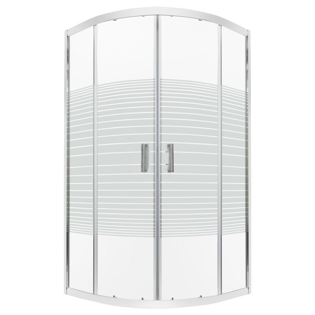 Bezpečnostní tvrzené, průhledné sklo s dekorem (bílé pruhy) o tloušťce 4 mm, zajišťuje částečné zneprůhlednění a zároveň snadnou údržbu. Pro zachování čistého vzhledu doporučujeme používat stěrku na sklo, která pomáhá předcházet tvorbě vodních skvrn a matnému filmu.