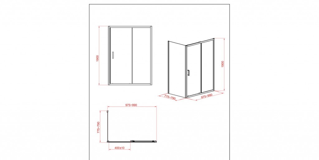 Sprchový kout obdélník 100x80x190, posuv, čiré sklo (S154-003)