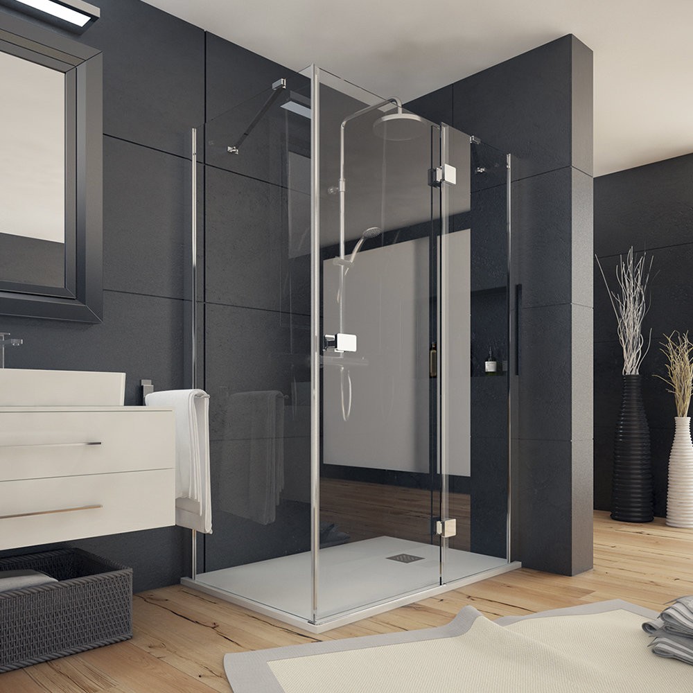 Sprchové kouty série SMART R23 s jedněmi otevíracími dveřmi na panty. Jedinečný design navržený pro náročné zákazníky splňující kritéria elegance a designu s maximálním důrazem na funkčnost a a praktičnost. Čiré provedení skleněných ploch v tloušťce 8 mm a výšce 195 cm. Chromová podlahová lišta a magnetické uzavírání dveří jsou samozřejmou součástí konstrukčního řešení. Vyrovnávací profil s 2 cm roztažením je součástí každého modelu.