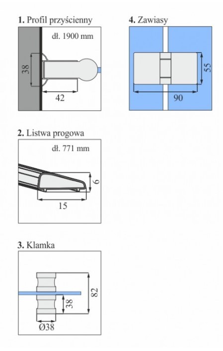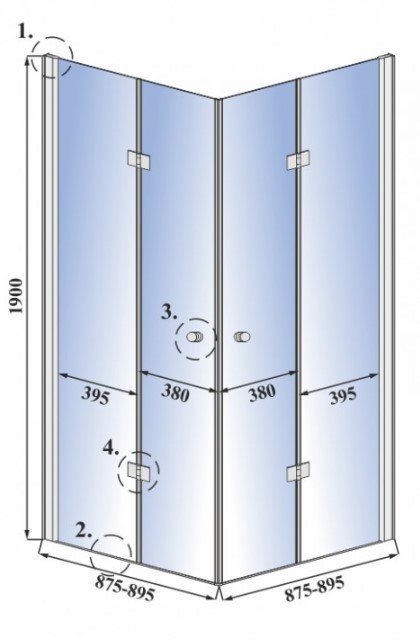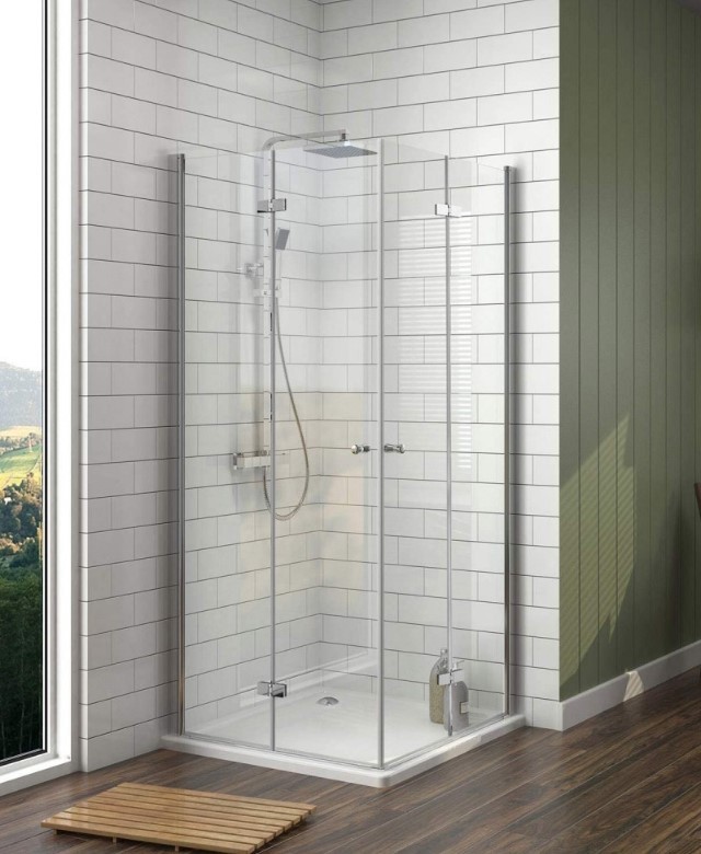 Zalamovací panty umožňují otevřít dveře jak dovnitř tak ven ze sprchového koutu. Díky nastavovacímu profilu je možno dveře instalovat i do ne zcela rovné sprchové niky (rozmezí cca 2 cm). Dveře ovládáte pomocí kovového madýlka, které nikterak nenarušuje jemný ráz dveří. Spodní těsnění společně s nizoučkou prahovou lištou zaručí odtok vody zpět do sprchového koutu.