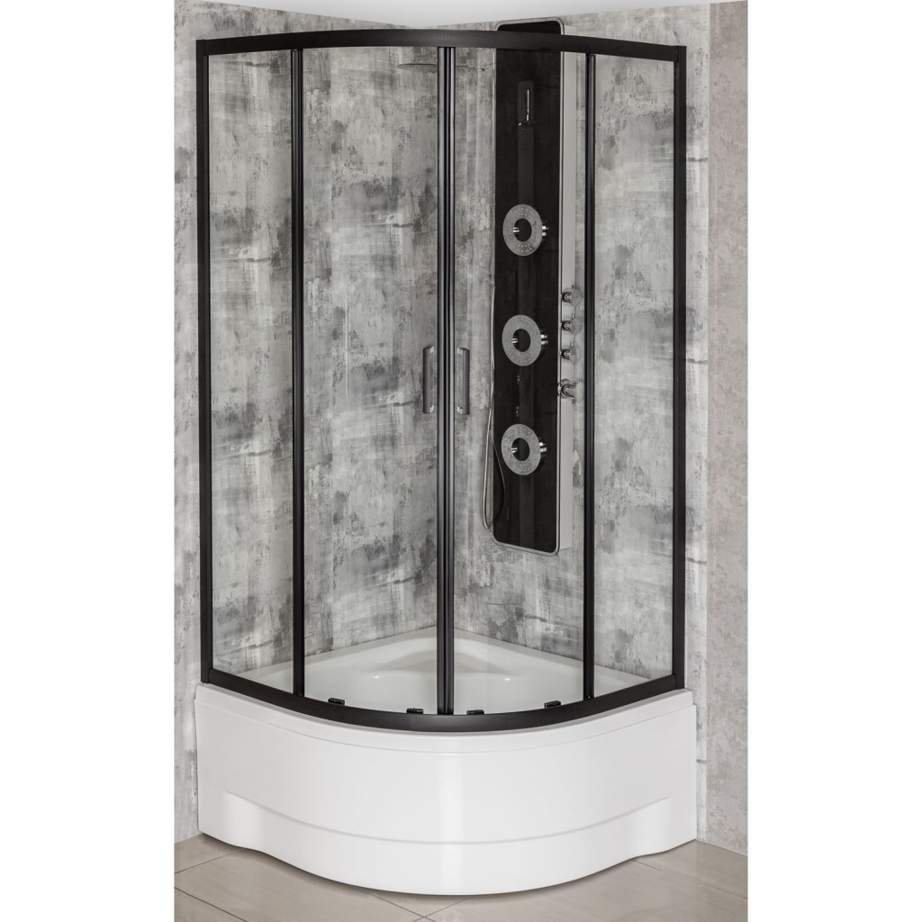 Tento sprchový kout s hlubokou vaničkou je funkční sada, která se hodí do moderních i klasických koupelen. Díky svému půlkruhovému designu je ideální pro rohovou instalaci, šetří místo a zajišťuje pohodlí.