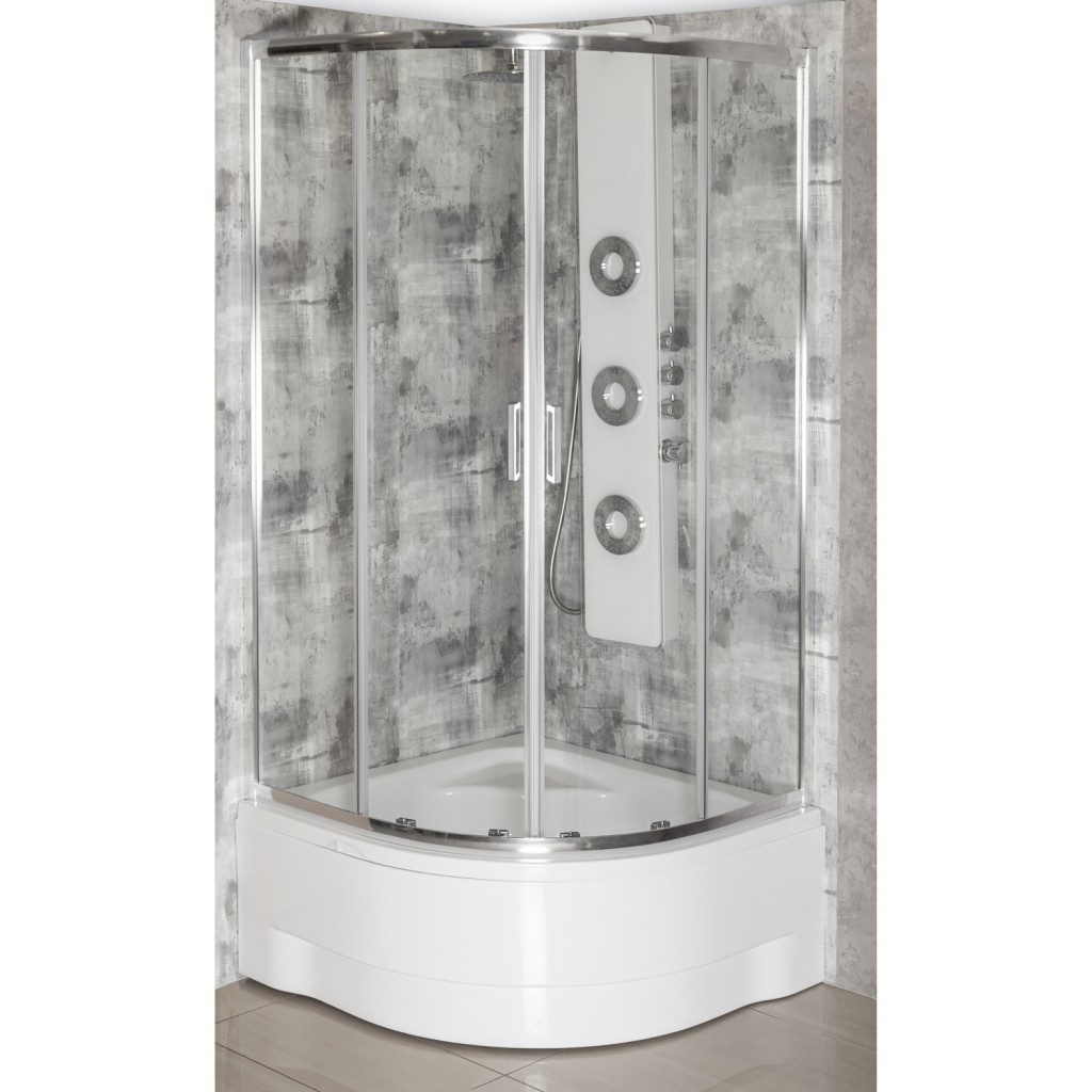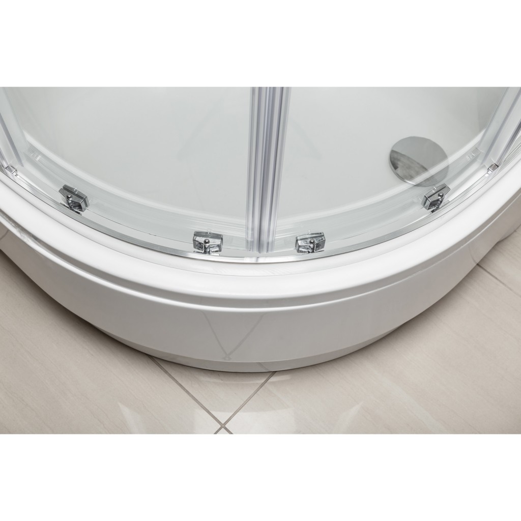 Tento sprchový kout s hlubokou vaničkou je funkční sada, která se hodí do moderních i klasických koupelen. Díky svému půlkruhovému designu je ideální pro rohovou instalaci, šetří místo a zajišťuje pohodlí.