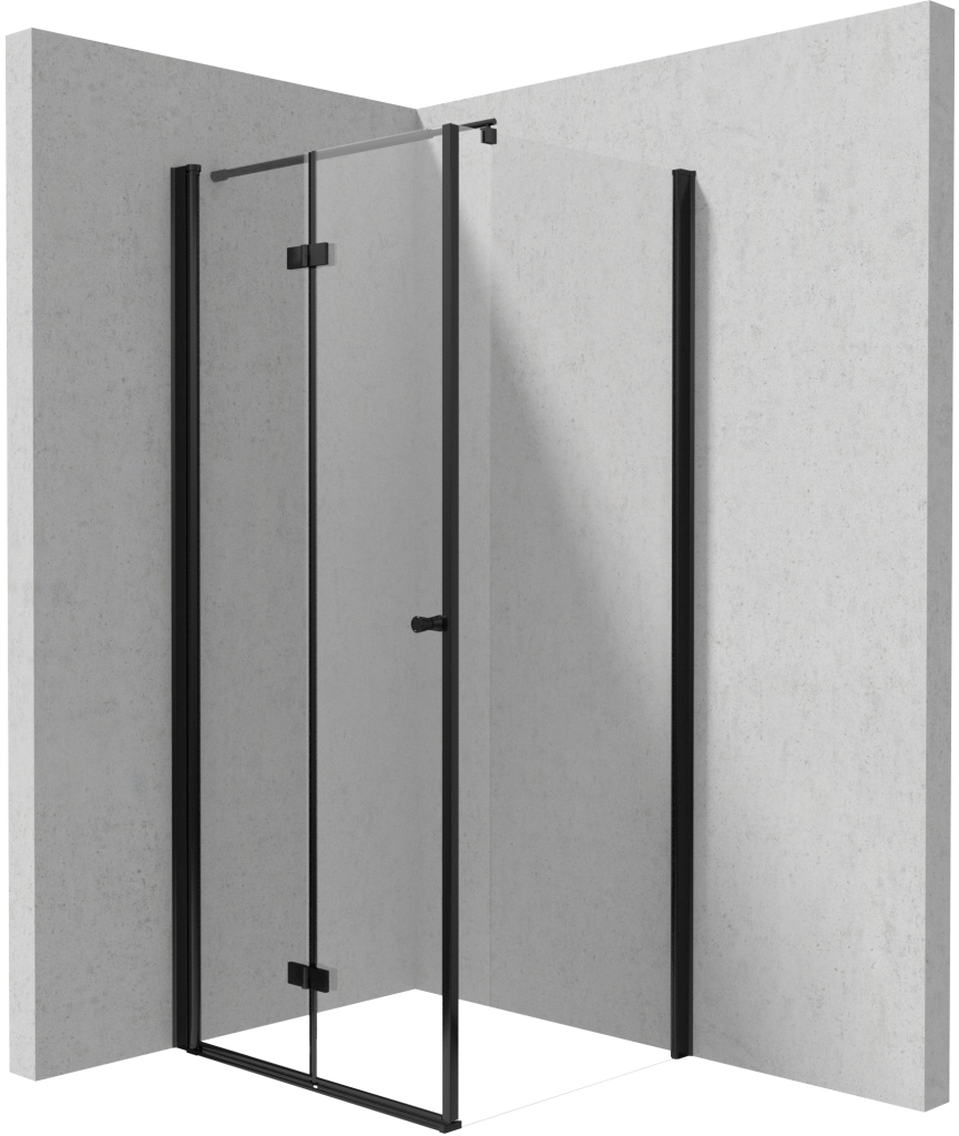 Sprchový kout KERRIA PLUS se zalamovacími dveřmi a pevnou boční stěnou KERRIA PLUS výšky 2000 mm s transparentním sklem TOTAL WHITE o síle 6 mm je podrobeno procesem kalení, kdy se sklo stává tvrdším, pružnějším a odolnějším. Profilový systém umožňuje kompenzovat zakřivení stěn, a mají skryté upevňovací prvky. Moderní jednobodový úchyt je pokryt gumovou ochrannou vrstvou. V nabídce jsou rámy chromové nebo v matném černém provedení. Sprchový koout se vyznačuje velmi tichým chodem dveří, a to díky magnetickému těsnění, které změkčuje zavírání.