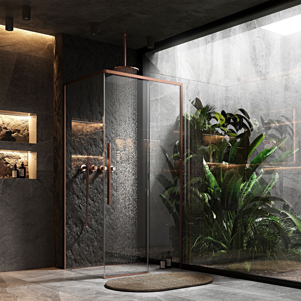 Solar je výrazný a nadčasový moderní sprchový kout, vyrobený z nejkvalitnějších materiálů a povrchově upraveny zlatoskvoucím lakováním. Zlatý lak je odolný vůči nečistotám a skvrnám a také se snadno čistí. Kombinace zlatých profilů, dlouhého madla a pantů s průhlednou linií skleněných ploch skvěle zapadne do moderní i tradiční koupelny. Montážní návod
