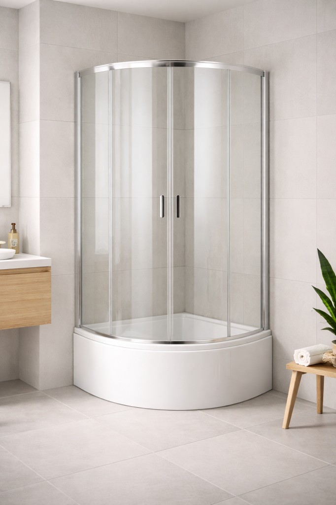 Čtvrtkruhový sprchový kout Toledo plus s hlubokou akrylátovou vaničkou vyniká vysoce kvalitním zpracováním a spolehlivou funkčností všech součástí a materiálů. Komfortní odklápěcí pojezdy výrazně usnadňují údržbu sprchového koutu.