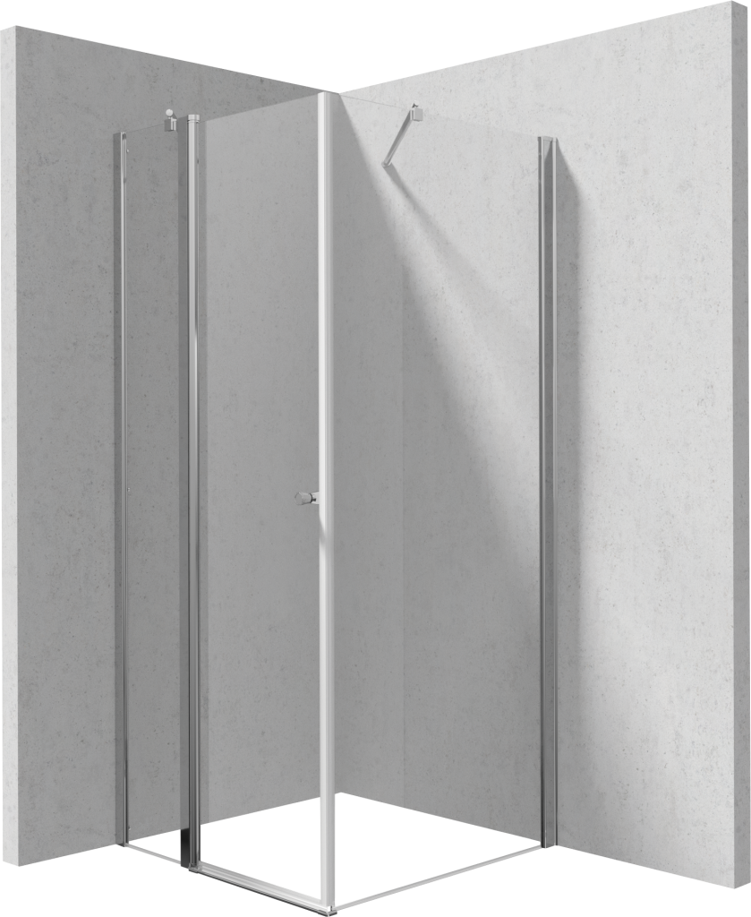 Sprchový kout KERRIA PLUS výšky 2000 mm s pevným polem a dveřmi otevíranými pouze ven v kombinaci s pevnou boční stěnou. Jako výplň je použito transparentní sklo o síle 6 mm, které je podrobeno procesem kalení, kdy se sklo stává tvrdším, pružnějším a odolnějším. Sprchová zástěna je pokryta vrstvou Active Cover, která má hydrofobní vlastnosti. Nejsou zde žádné nevzhledné skvrny a čištění není potřeba tak často. V nabídce jsou rámy chromové nebo v matném černém provedení.