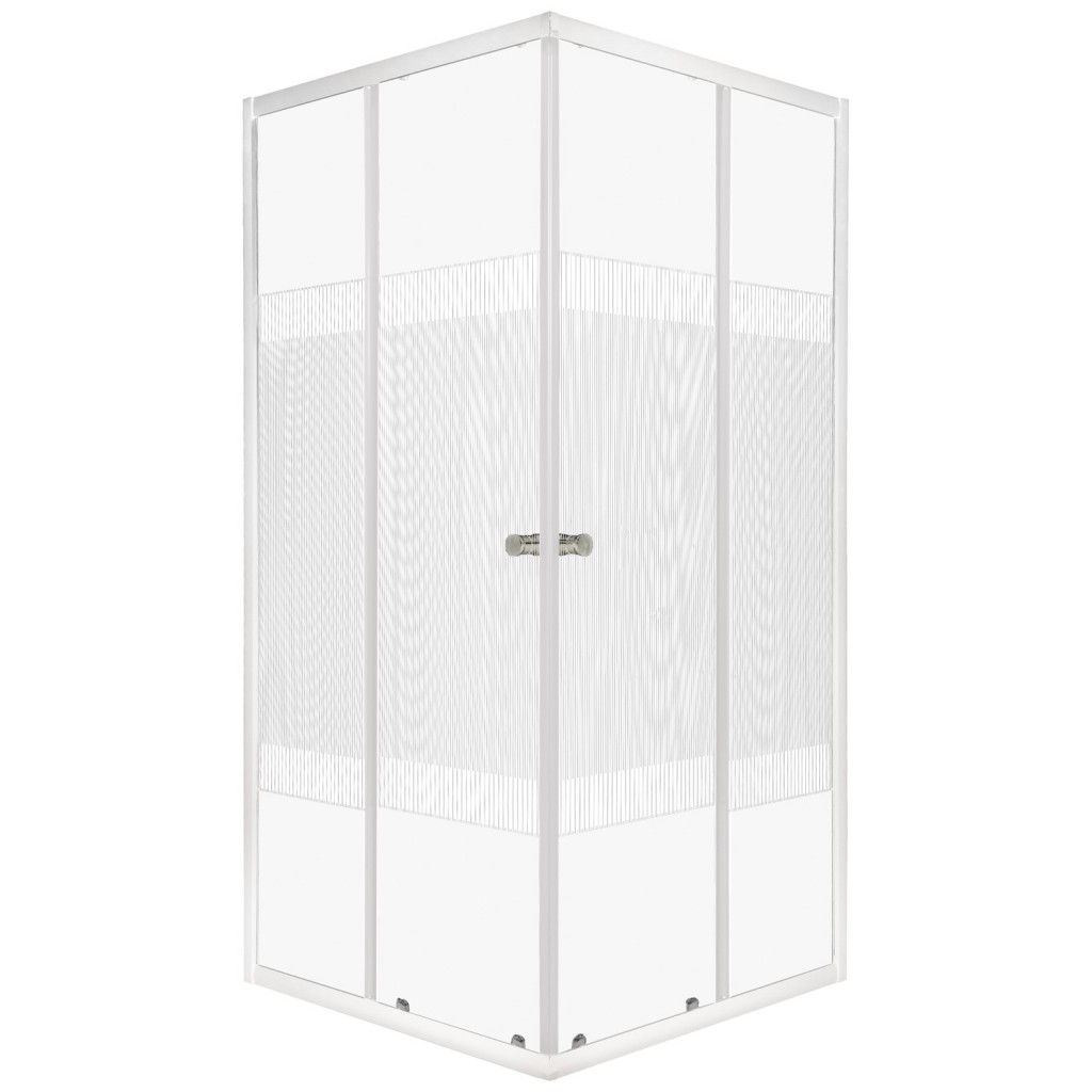 - Sklo: 4 mm (pevné stěny) 5 mm (dveře), tvrzené, průhledné s bílým vzorem