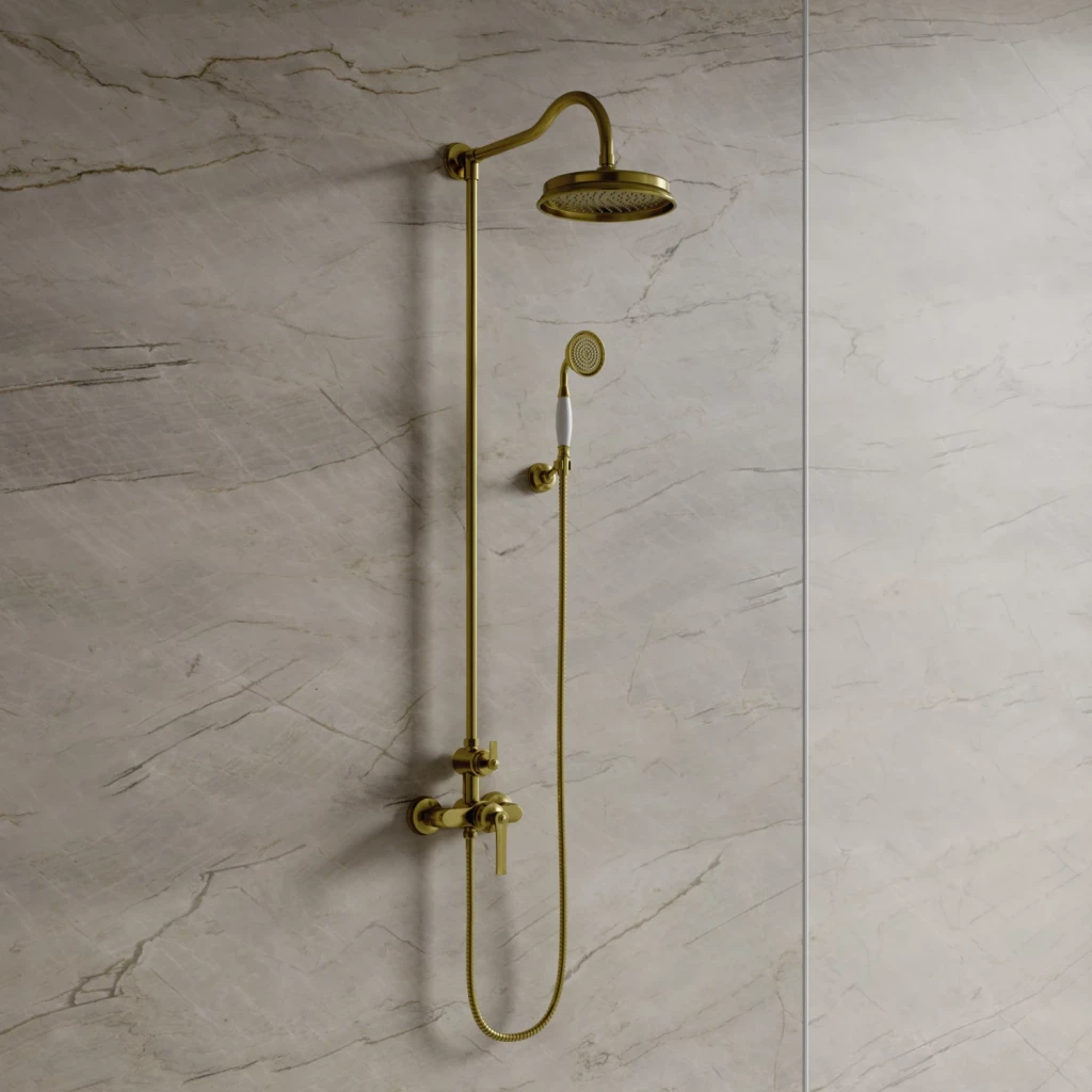- mosazná dešťová sprcha, rozměr: ø22,5 cm, dosah od stěny: 42 cm