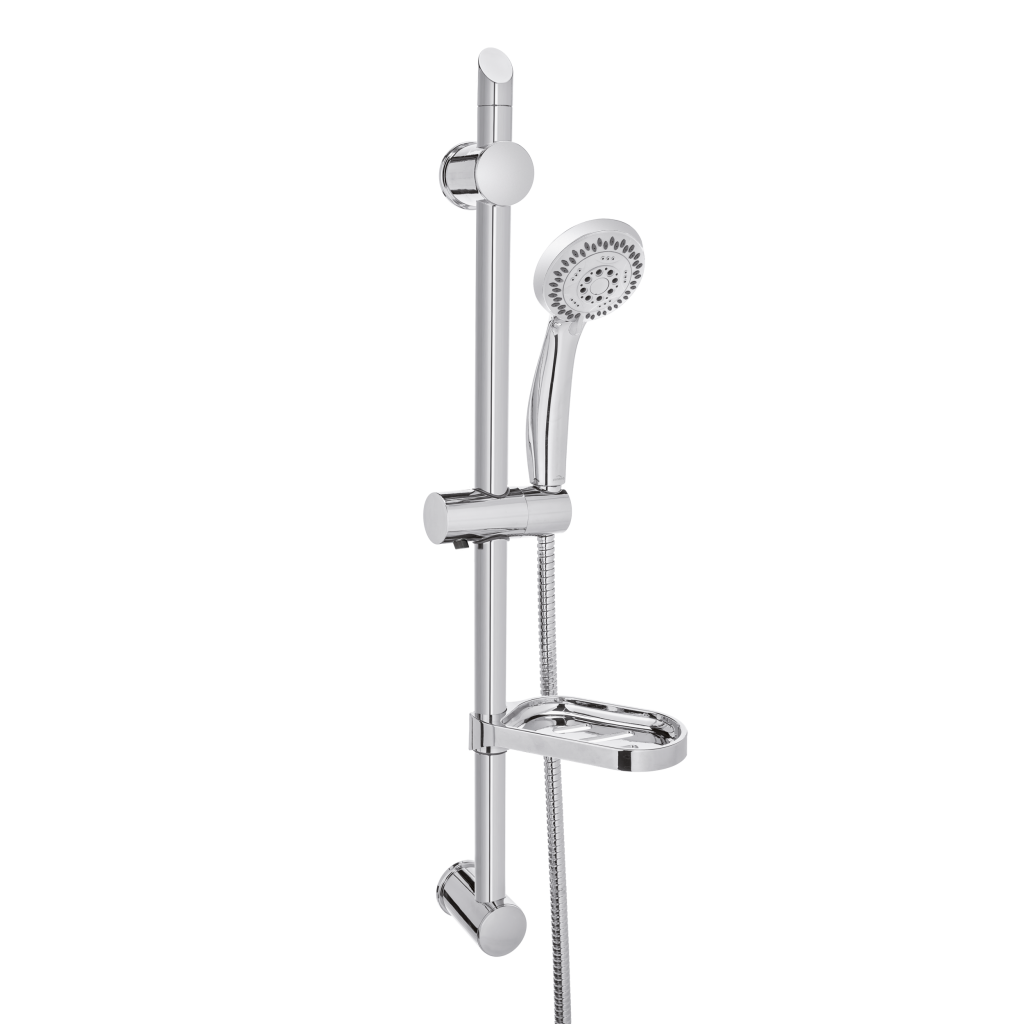 Nástěnný sprchový set ESLA s 5-funkční ruční sprchou, se systémem proti usazování vodního kamene ANTI-CALC. Sprchová tyč je s nastavitelnými montážní držáky, které umožňují přizpůsobit tyč dříve vyvrtaným otvorům ve zdi.