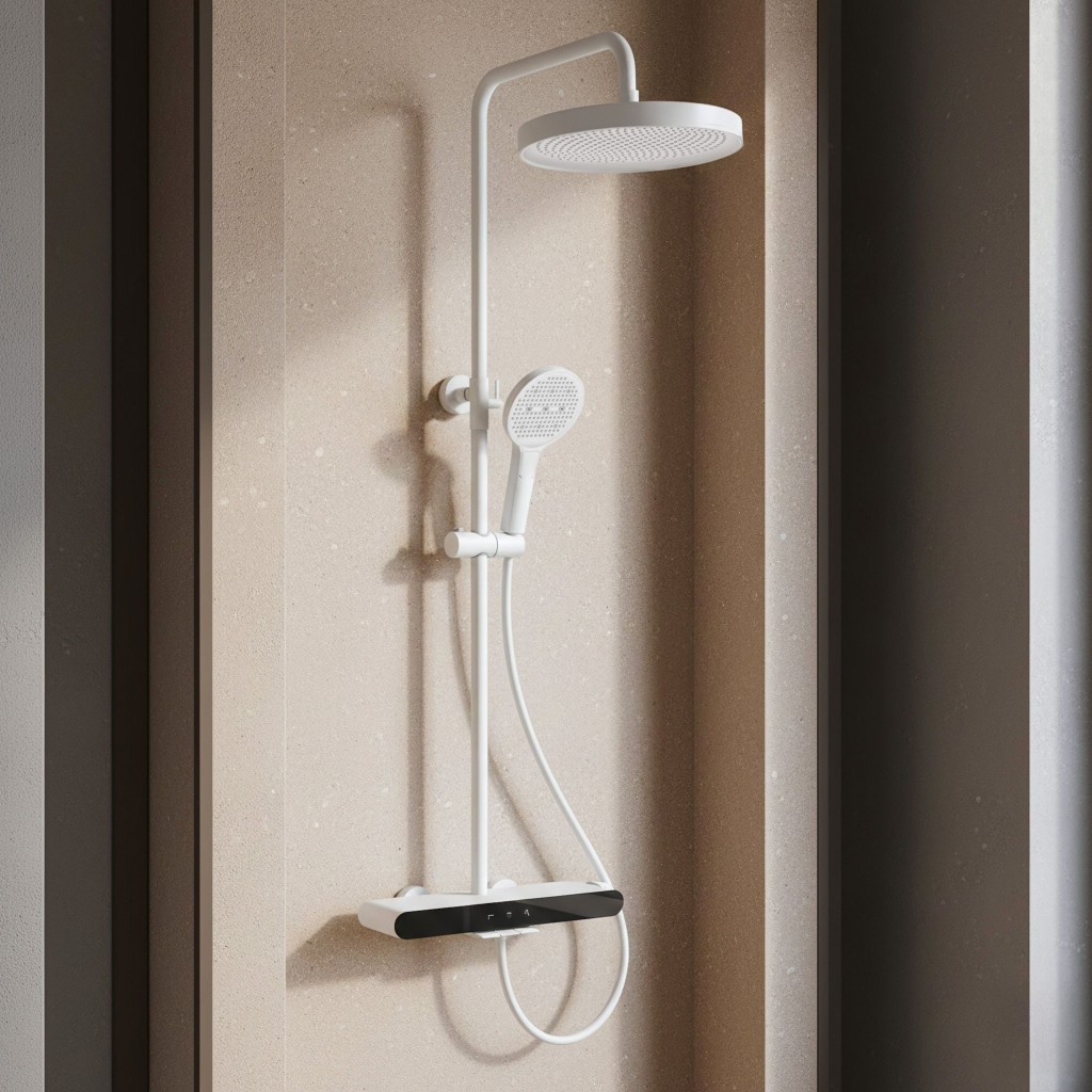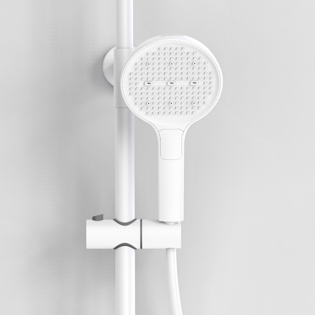 Vneste do své koupelny svěžest a inovaci díky nástěnnému sprchovému setu Rea Farel White. Tento model je ideálním spojením sněhově bílé estetiky a pokročilé funkčnosti. Místo standardních řešení nabízí Farel pohodlné tlačítkové ovládání a unikátní ruční sprchu s funkcí bidetky.Intuitivní panel Piano – srdcem setu je baterie vybavená systémem elegantních tlačítek. Ta umožňují bleskové přepínání proudu vody mezi hlavovou sprchou, ruční sprchou a výtokem a dodávají armatuře moderní, minimalistický charakter.Ruční sprcha s funkcí Bidetta – praktický „pomocník“ ukrytý v elegantní formě. Ruční sprcha má tlačítko na zadní straně těla a další vývod nahoře. Po aktivaci se mění na bidetku, ideální pro rychlé opláchnutí koutu, umytí vaničky či hůře dostupných míst.Diskrétní kaskádový výtok – tělo baterie má široký vývod, který plní funkci vanového výtoku. Umožňuje pohodlné naplnění nádoby i rychlou kontrolu teploty vody bez namáčení rukou pod hlavovou sprchou.Technologie Powder Coating + Polymerizace – bezchybná bílá byla získána pokročilým procesem práškového lakování, následně vytvrzeného polymerizací. Tento povrch je mimořádně odolný, rezistentní vůči korozi i detergentům a hlavně nežloutne, takže si zachovává matný vzhled po léta.Robustní konstrukce – tělo baterie je vyrobeno z odolné mosazi. Hlavová i ruční sprcha z ABS jsou lehké, snadno ovladatelné a mají systém proti usazování vodního kamene.Komfort pro každého – set je vybaven tyčí s nastavením výšky, což umožňuje ideálně přizpůsobit polohu hlavové sprchy výšce uživatelů i stropu.Set Rea Farel je skvělou volbou do světlých koupelen ve skandinávském, boho nebo moderním stylu. Jeho bílý matný povrch opticky prosvětluje interiér a pokročilá funkčnost dělá z každodenního používání čistou radost.