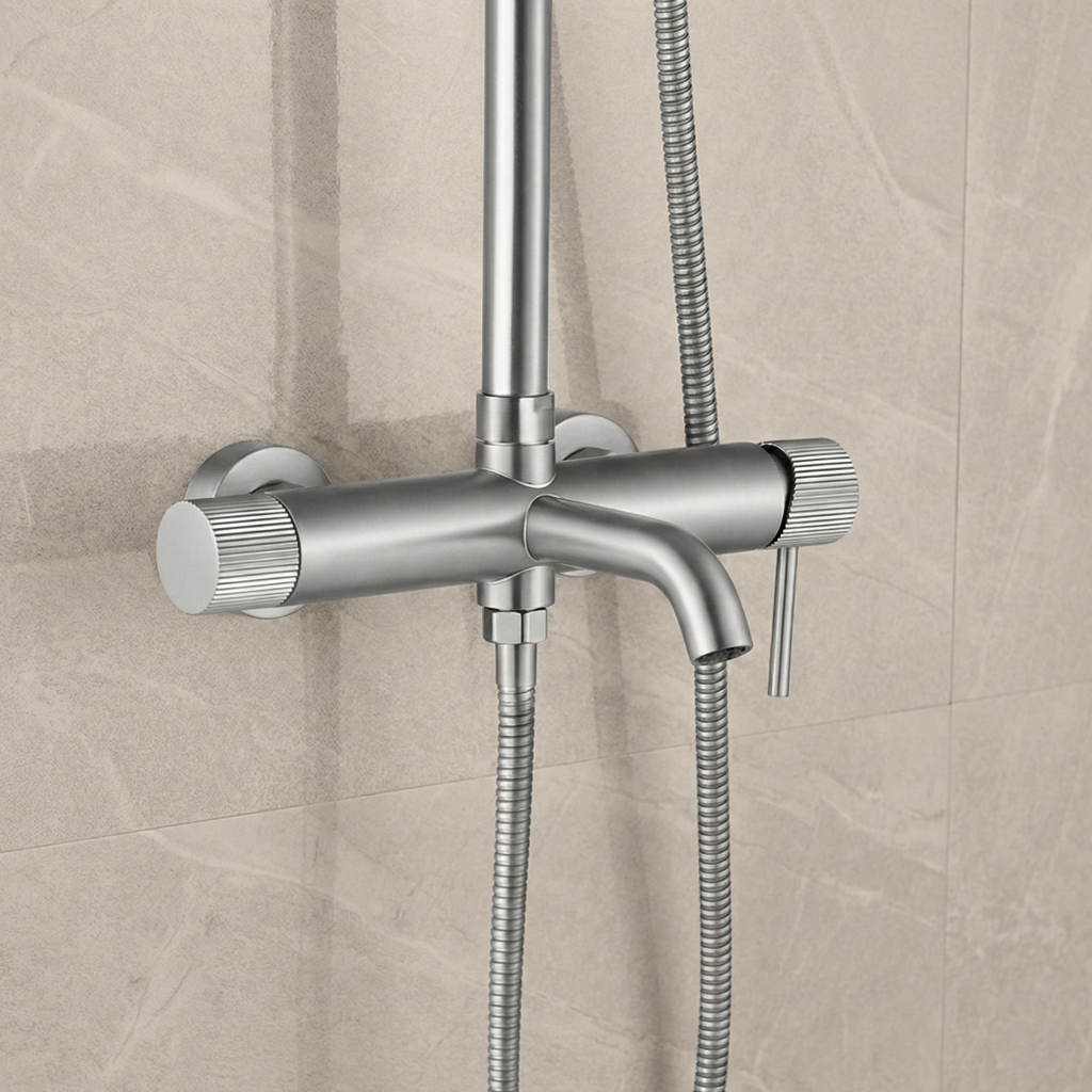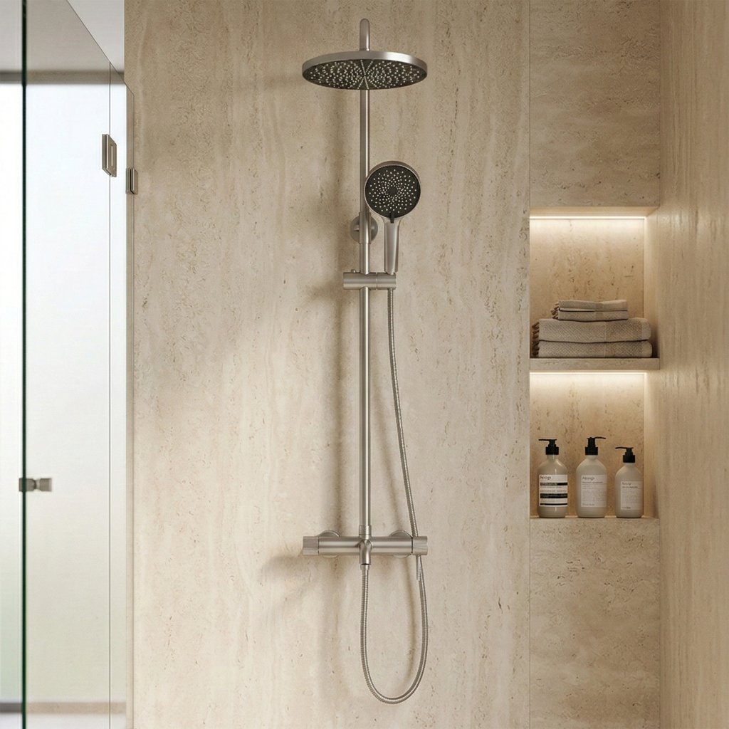 Sprchový set Rea Lungo Stripe v provedení Kartáčovaný nikl je spojením moderního designu s vysokou funkčností. Charakteristickým prvkem série jsou jemné drážkované detaily, které dodávají armatuře jedinečný, šperkařský styl. Díky použití pokročilé technologie PVD povlakování se set vyznačuje mimořádnou trvanlivostí a odolností proti poškození. Povrch Kartáčovaný nikl – elegantní matný povrch, který účinně maskuje skvrny od vody a otisky prstů, což usnadňuje každodenní čištění. Struktura Stripe – unikátní drážkování na prvcích setu zdůrazňuje moderní charakter koupelny a zlepšuje úchop. Technologie PVD – zaručuje víceletou stálost barev a vysokou odolnost proti poškrábání a korozi. Kompletní sprchový systém – set obsahuje velkou dešťovou sprchu, ergonomickou ruční sprchu a nástěnnou baterii, což zajišťuje plný komfort používání. Vysoce kvalitní materiály – mosazné tělo zajišťuje bezporuchovost po léta. Set Rea Lungo Stripe je ideálním řešením pro lidi hledající odolnou a efektní armaturu, která se stane výrazným dekorativním prvkem v každé moderní koupelně.