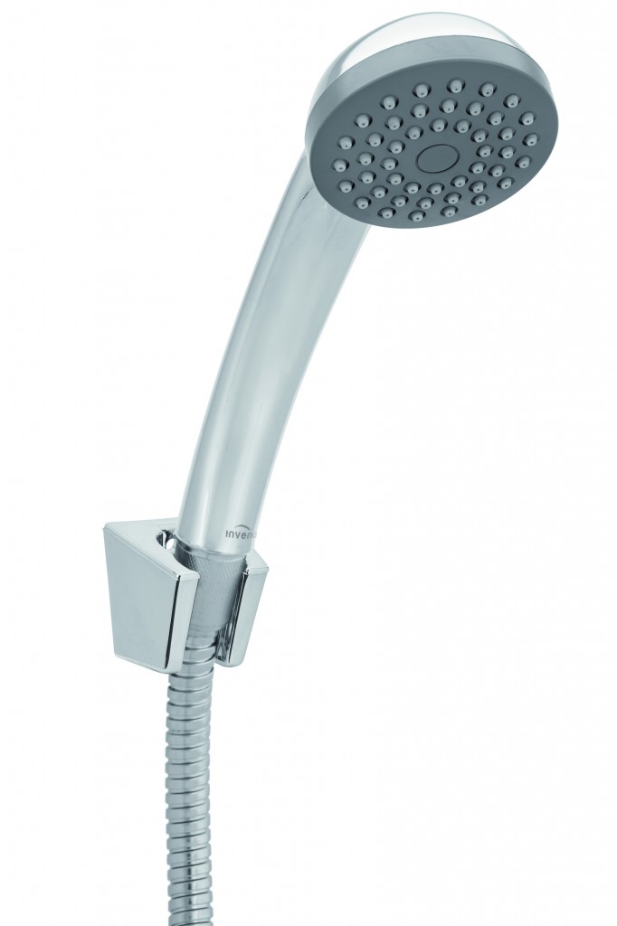 Nástěnný set MINI EOL - jednobodový pevný držák ruční sprchy s 1-funkční ruční sprchou, se systémem proti usazování vodního kamene ANTI-CALC a ocelovou dvouzámkovou hadicí délky 150 cm.