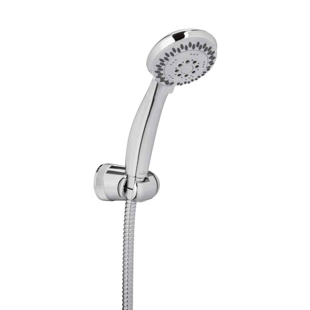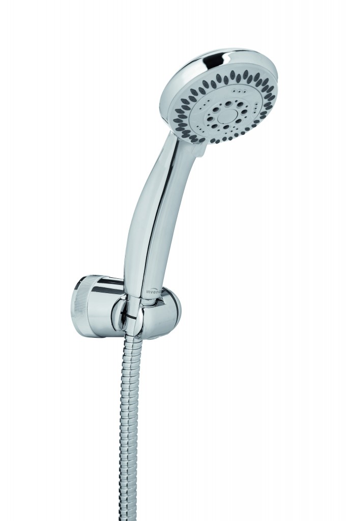 Nástěnný set MINI ESLA - nastavitelný jednobodový držák ruční sprchy s 5-funkční ruční sprchou, se systémem proti usazování vodního kamene ANTI-CALC a ocelovou dvouzámkovou hadicí délky 150 cm.