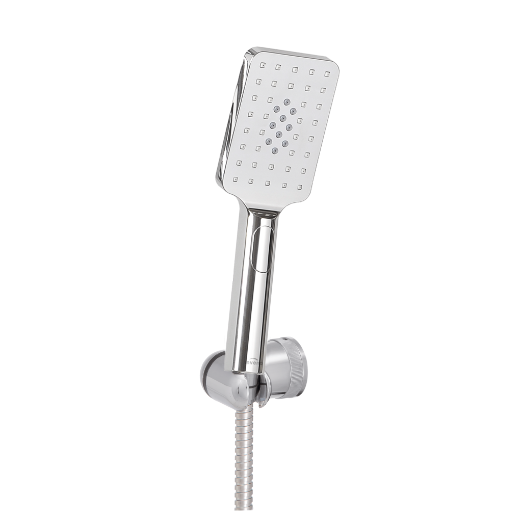 Jednobodový sprchový set NYKS v chromovém provedení od výrobce INVENA se třemi funkcemi. Díky systému anti-calc se snadno zbavíte vodního kamene z trysek.