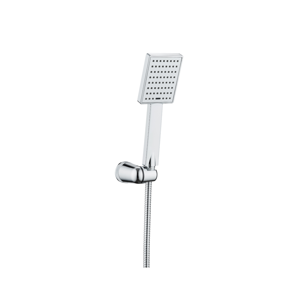 Nástěnný set MINI PATRAS - nastavitelný jednobodový držák ruční sprchy s 1-funkční ruční sprchou, se systémem proti usazování vodního kamene ANTI-CALC a ocelovou hadicí délky 150 cm.