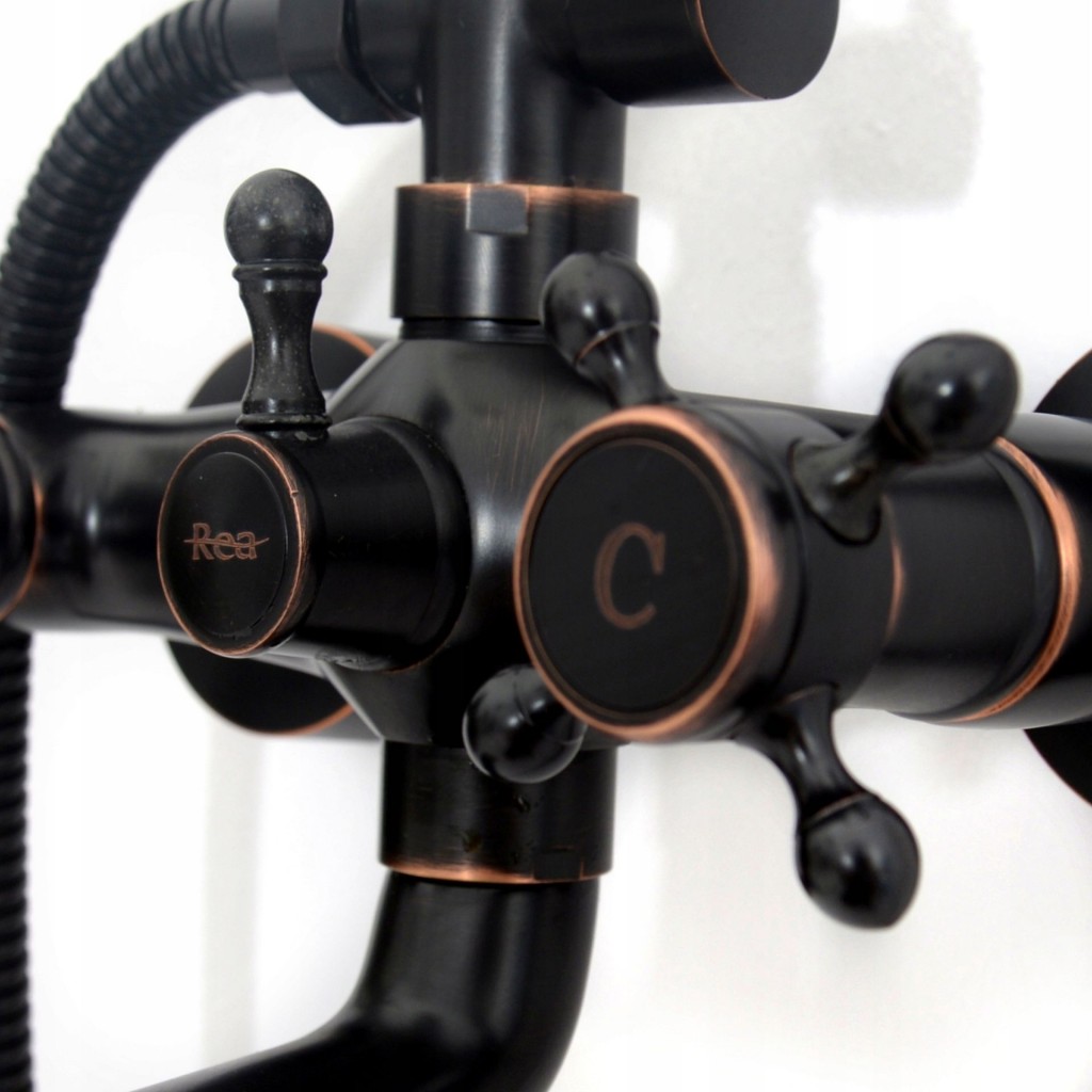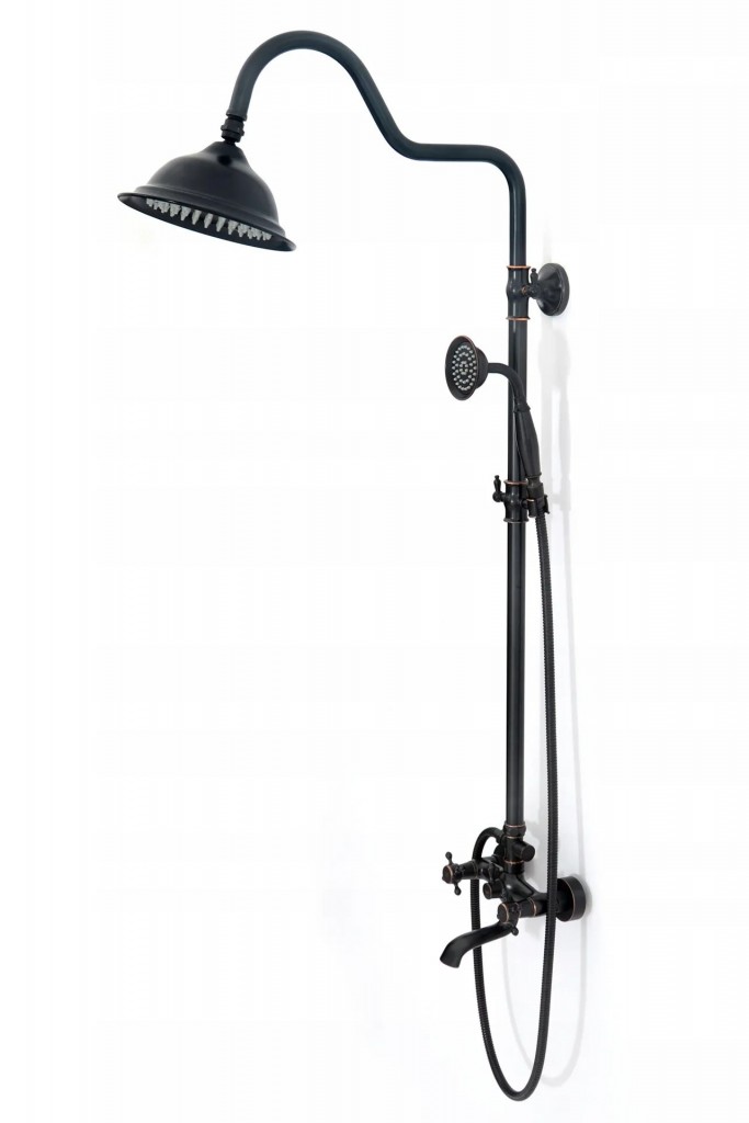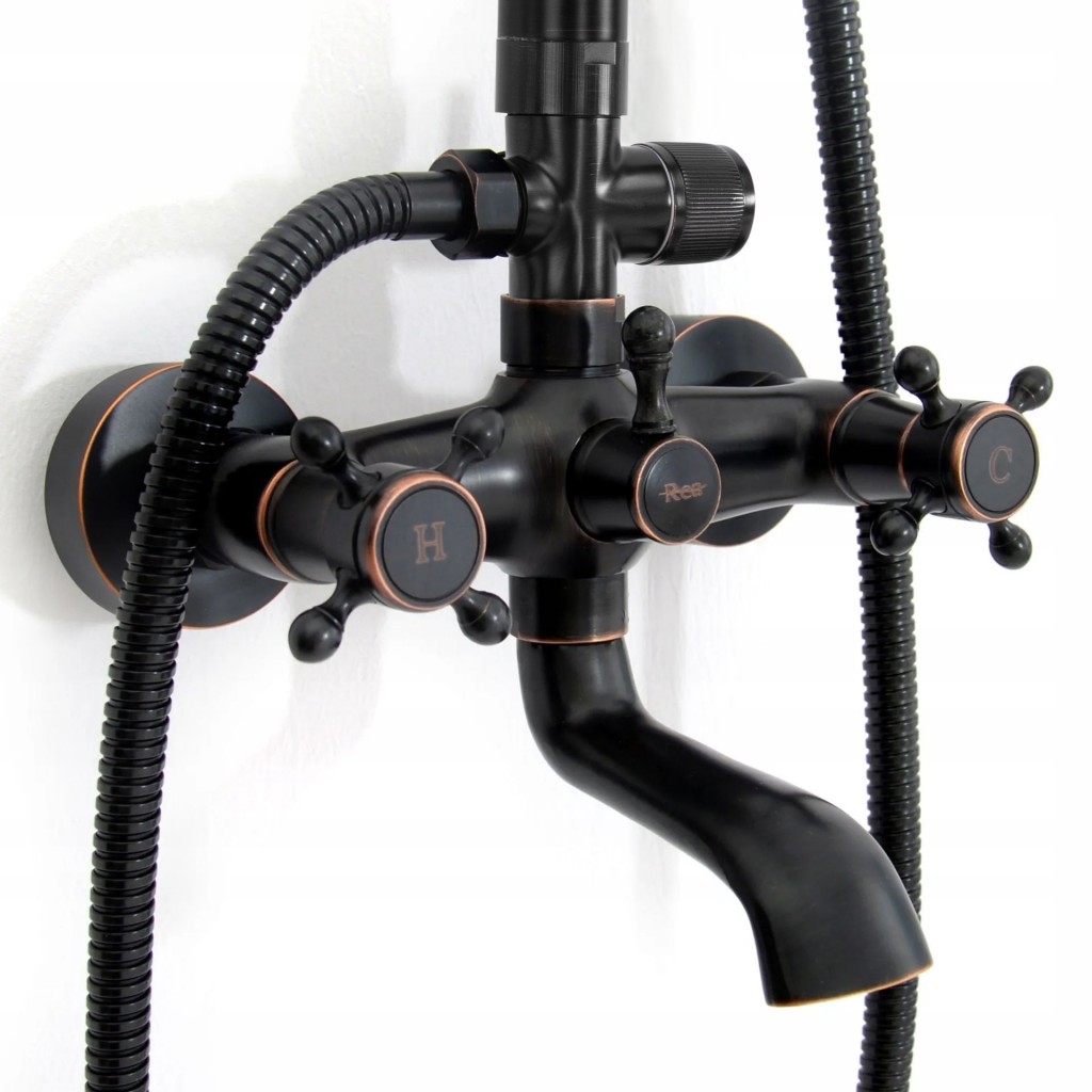 Chcete si užívat horkou sprchu a cítit se jako na zámku? Nebo ladíte svůj domov do retro stylu? Tento sprchový set je ke sladění celého interiéru jako stvořený. Má temně černou barvu a spoje jsou ozvláštněny lehce bronzovým odstínem. To vytváří starý a oprýskaný vzhled.
