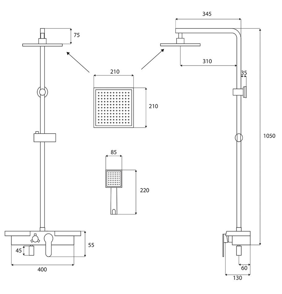 | Horní sprcha | 210 × 210 mm |