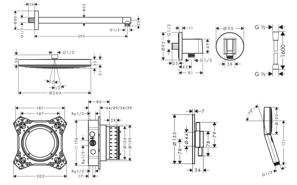 - Adjustable Shower Head umožňuje nastavení sprchy do požadovaného úhlu