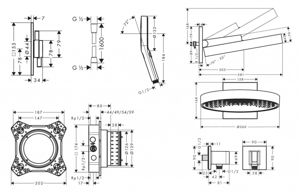 - rameno sprchy vertikálně nastavitelné o 10-30°