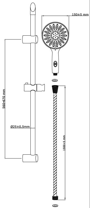 Sprchový set , obsahuje ruční sprchu kterou si můžete umístit do posuvného držáku na tyči a nebo do horního držáku a využit ji jako horní sprchu navozující pocit tropického deště.