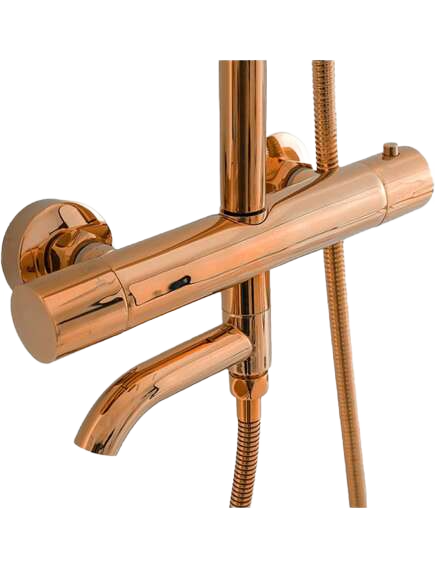 Sprchová sada s termostatem Rea Lungo představuje spojení špičkového komfortu, funkčnosti a luxusního vzhledu. Moderní design s elegantními liniemi vyniká především díky honosnému měděnému provedení, které působí exkluzivně a zároveň nadčasově. Termostatická baterie je vyrobena z kvalitní mosazi a lakována ve třech vrstvách, což zaručuje vysokou odolnost vůči korozi i vyblednutí barvy. Všechny komponenty sady jsou zhotoveny z prémiových materiálů, které zajišťují dlouhou životnost a spolehlivost. Ideální volba pro každého, kdo hledá elegantní a funkční řešení do moderní koupelny.