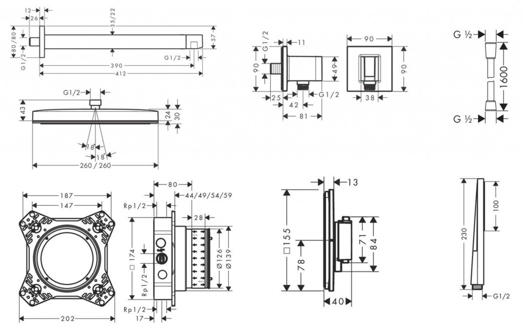 - dodáváno s tlačítkem Rain malý, Rain velký, ruční sprchu, vodopád, vanu