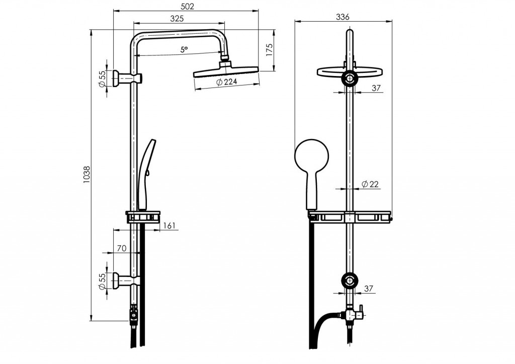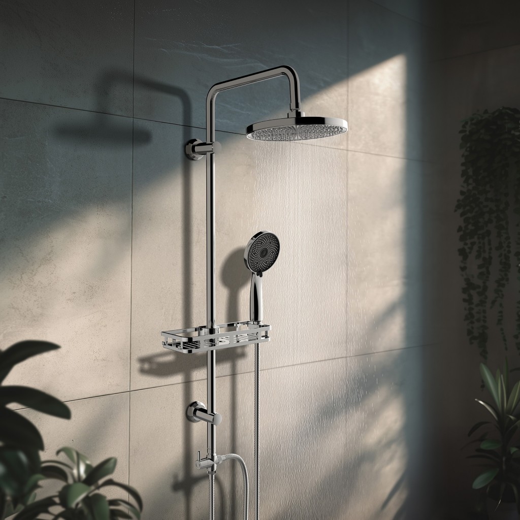 Elegantní sprchový set SILVERFLOW s odkládací poličkou, s hlavovou sprchou a ruční sprchou LUNA. Set je určen pro připojení k nástěnné sprchové baterii. Pro ty, kdo se nespokojí s pouhou sprchou a rád si užívá maximální komfort při sprchování. Hlavice obou sprch jsou konstruovány tak, aby byly velmi šetrné ke spotřebě vody. Polohovatelná ruční sprcha s 6 možnostmi nastavení. Vyrobeno z kvalitního nerez materiálu.