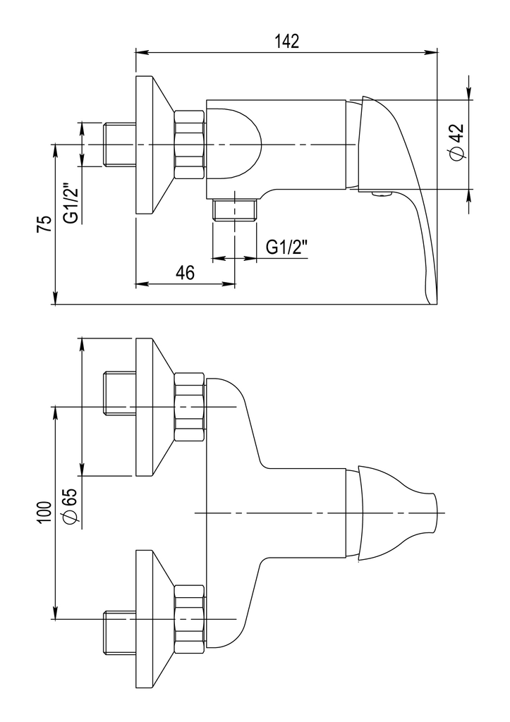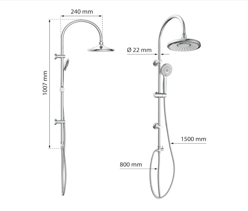 Výška setu je 102 cm, vzdálenost výtoku horní sprchy od zdi je 245 mm.