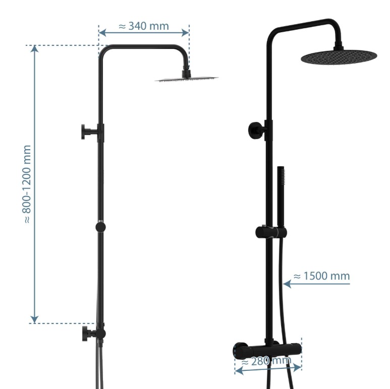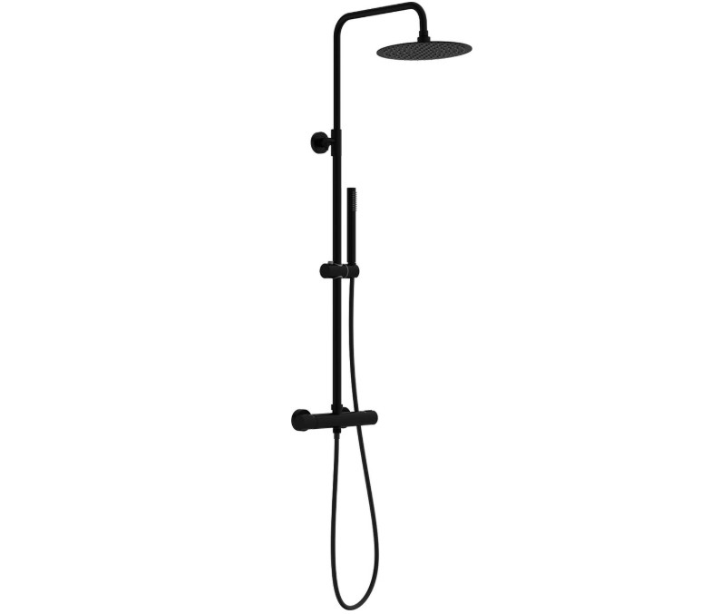 Luxusní sprchový set AQUADUCT v matně černém provedení přináší do vaší koupelny nadčasový styl, precizní zpracování a pohodlí při každodenním používání. Díky termostatické baterii si můžete snadno nastavit ideální teplotu vody a užívat si bezpečné, stabilní sprchování bez nečekaných výkyvů.
