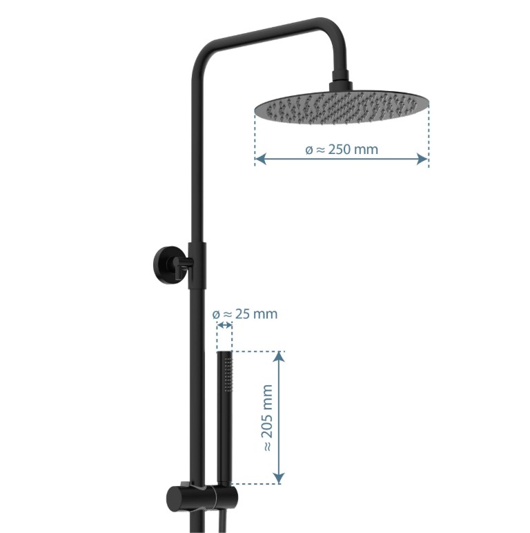 Dominantou setu je super plochá nerezová horní sprcha, která poskytuje široký a rovnoměrný proud vody pro dokonalý wellness zážitek. Trysky s ochranou proti vodnímu kameni usnadňují údržbu a zaručují dlouhou životnost.