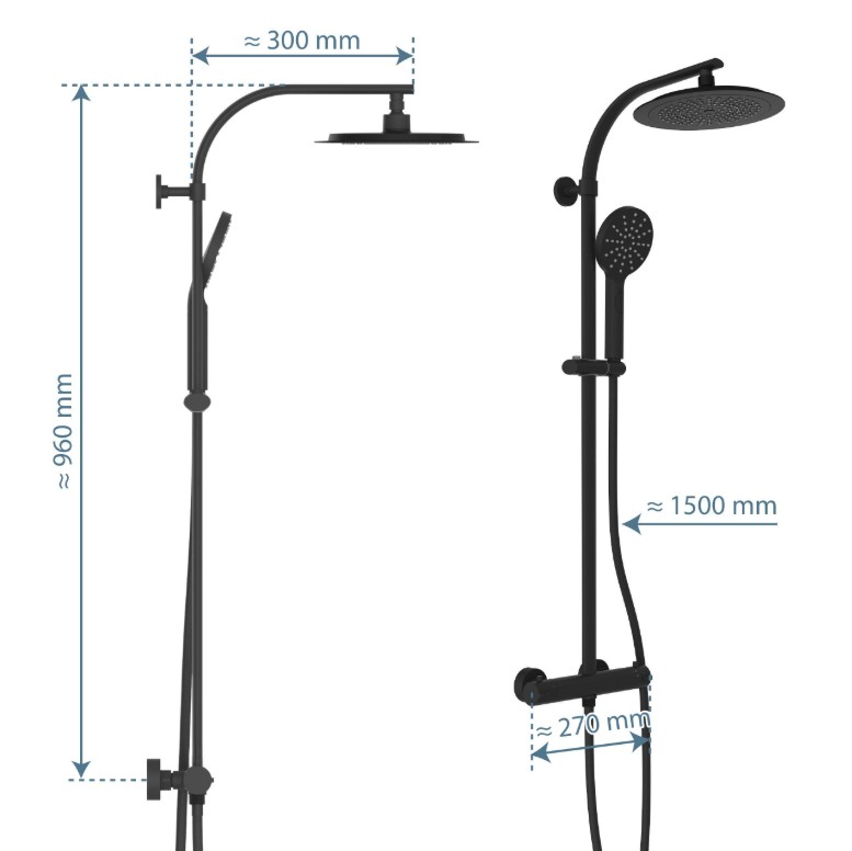 Sprchová tyč z nerezové oceli dodává celé sadě stabilitu, odolnost a dlouhou životnost.